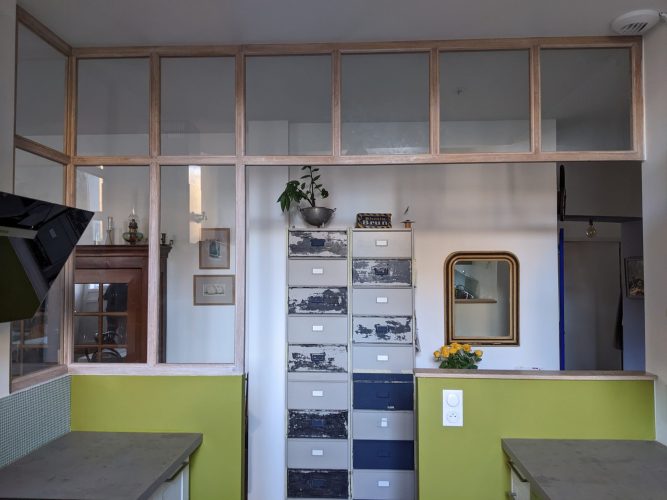 Verrière de séparation intérieure en chêne.